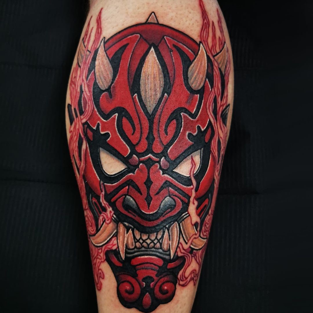 New one by • @markp_tattoo Darth maul hannya mask done today, still a little more to do but broke the back of it. Well done @stehaslam smashed it again. #darthmaul #sith #starwars #lucasfilm #hannya #hannyatattoo #tattoo #keepthefaithtattoo #liverpooltattoo