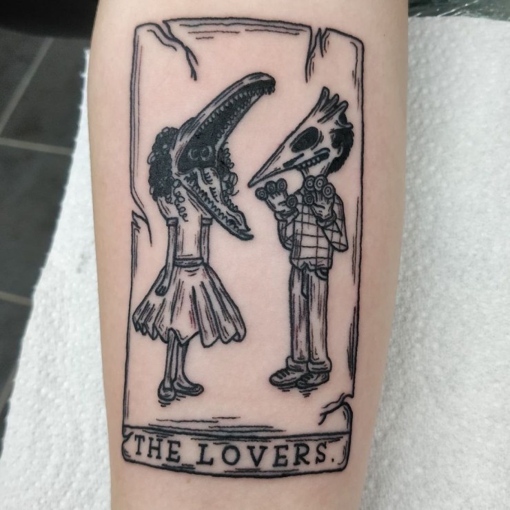 New one from Jay • @tattoosdonthurt #beetlejuice lovers tarot card from my Halloween flash.